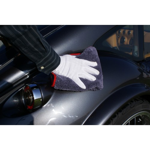 The hand-massage (step 4) can be omitted when the atmosphere temperature is high. To achieve the same effect, just leave the car in the sun for 30 minutes after removing 90% of the wax residue (step 3). Then park the car under shade and polish the now-softened wax with the Scholl Concepts Red MicroPlus cloth until a high gloss finish is achieved.