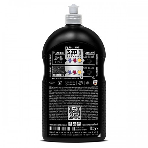 Scholl Concepts S20 Black Real 1-Step Compound is a visionary compound covering a wide range of applications for detailing weathered and scratched paint surfaces and leaving a hologram-free finish.