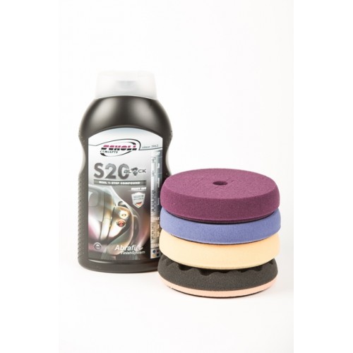 Depending on the specific clear-coat system, select from the four S20 Black polishing pads included in the kit according to the appropriate surface type and condition to get an excellent finish in just one single step. See below for recommended pad details.