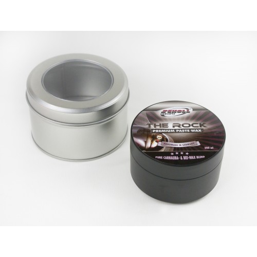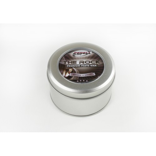 The Rock Premium Paste Wax is made with the highest quality Brazilian Carnauba by expert hands in Remseck, Germany. Thanks to its unique formula, a relatively high and dense layer of wax can be applied evenly without any effort onto the paint surface. This natural and crystal clear wax-shield protects the paint from the elements and leaves a mirror-like, deep, rich gloss. The Rock is a premium wax suitable for all vehicle types that gives four-star rated protection and is beautifully scented with Fresh Fruit. The wax container is packaged in a stylish presentation tin.