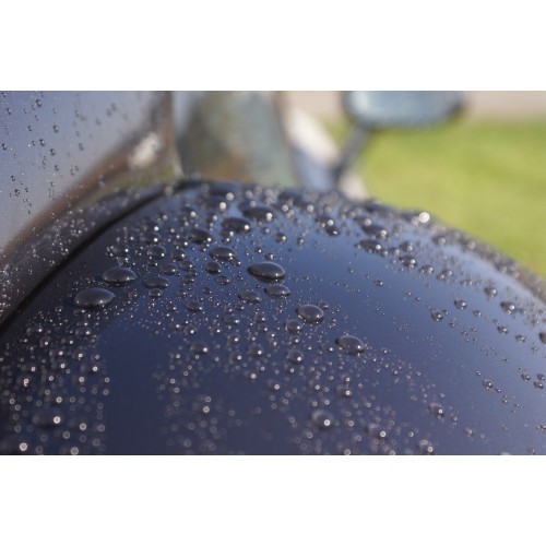 • Great water repellent effect. The small water bead size indicates the paint surface is finely and evenly coated thanks to the high density of natural Carnauba wax